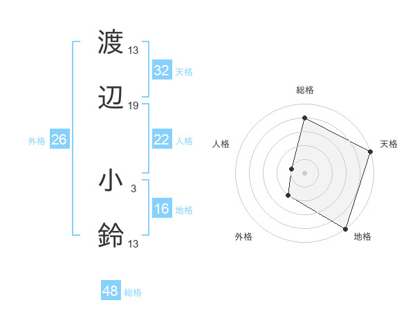 渡辺 小鈴さんを姓名の画数から五運を鑑定