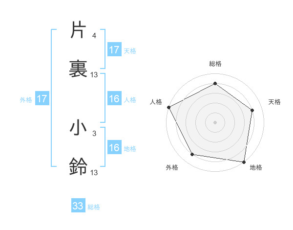 片裏 小鈴さんを姓名の画数から五運を鑑定