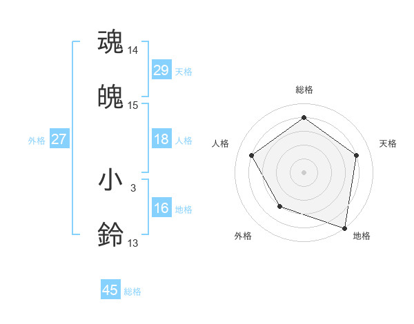 魂魄 小鈴さんを姓名の画数から五運を鑑定
