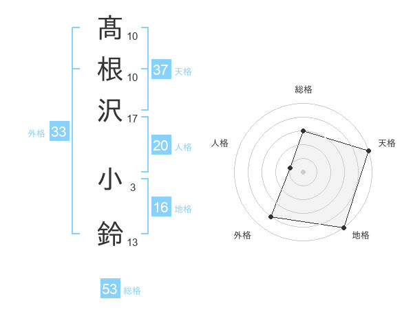 髙根沢 小鈴さんの総格は53画の3点!