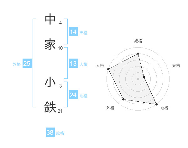 中家 小鉄さんを姓名の画数から五運を鑑定