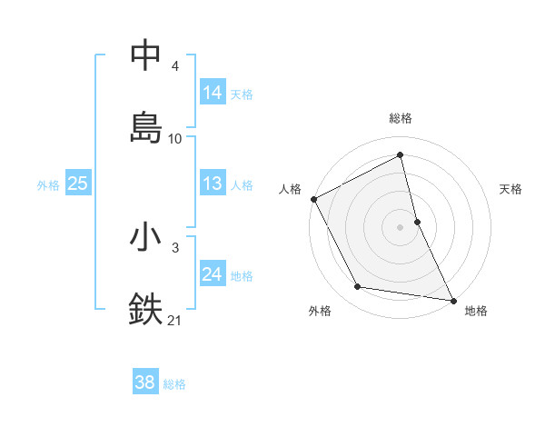中島 小鉄さんを姓名の画数から五運を鑑定