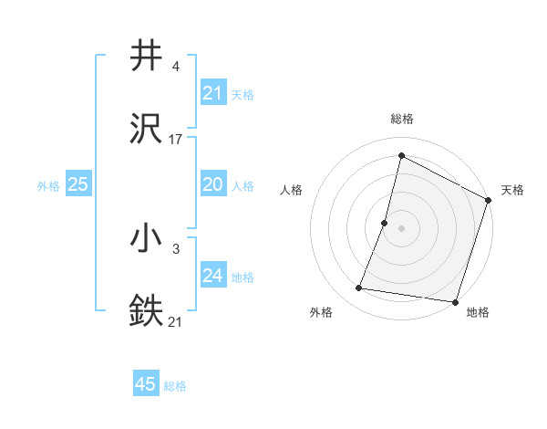 井沢 小鉄さんを姓名の画数から五運を鑑定