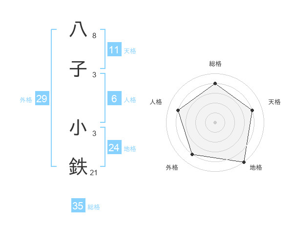 八子 小鉄さんの総格は35画の4点!