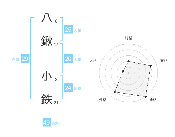 八鍬 小鉄さんの天格は25画の4点!