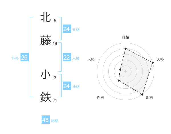 北藤 小鉄さんを姓名の画数から五運を鑑定