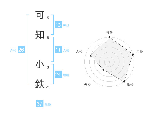可知 小鉄さんを姓名の画数から五運を鑑定