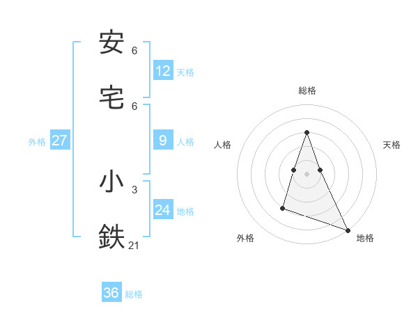 安宅 小鉄さんの総格は36画の3点!