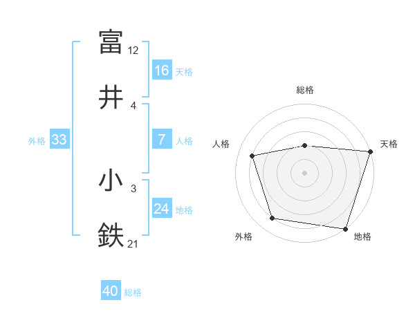 富井 小鉄さんの地格は24画の5点!