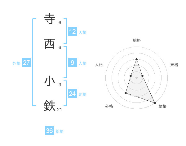 寺西 小鉄さんを姓名の画数から五運を鑑定