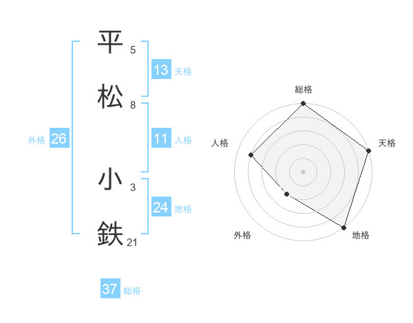 平松 小鉄さんの総格は37画の5点!