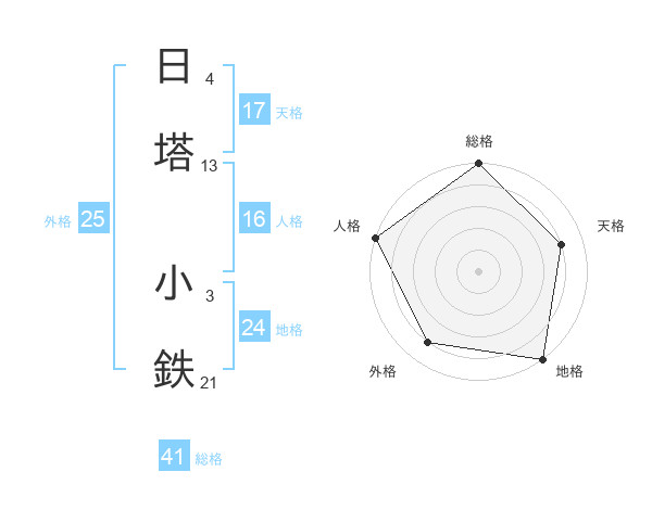 日塔 小鉄さんの天格は17画の4点!