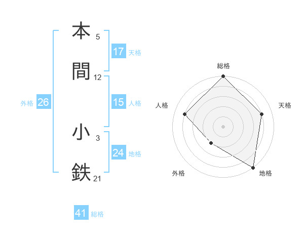 本間 小鉄さんの地格は24画の5点!