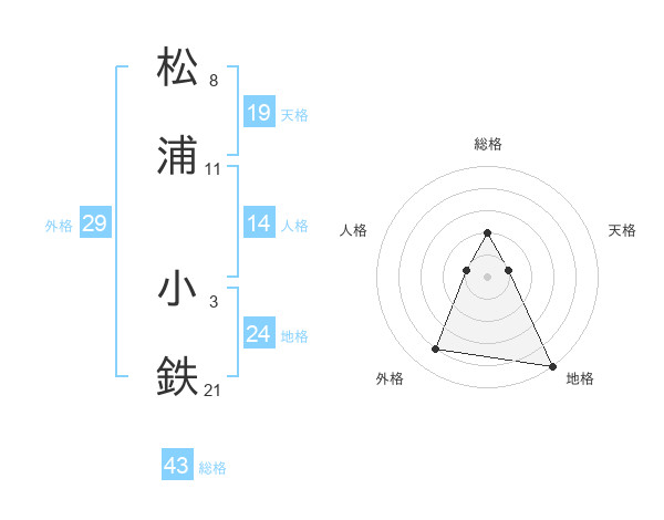 松浦 小鉄さんの総格は43画の2点!