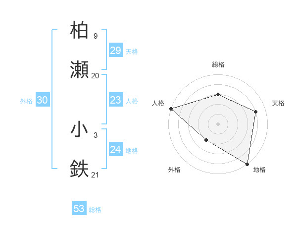 柏瀬 小鉄さんの総格は53画の3点!