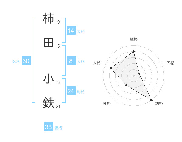 柿田 小鉄さんを姓名の画数から五運を鑑定