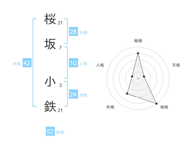 桜坂 小鉄さんを姓名の画数から五運を鑑定