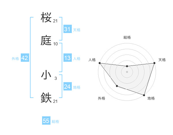 桜庭 小鉄さんを姓名の画数から五運を鑑定