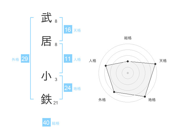 武居 小鉄さんの地格は24画の5点!