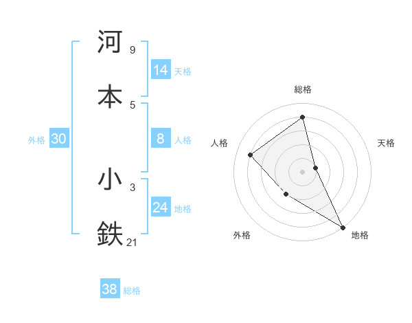 河本 小鉄さんを姓名の画数から五運を鑑定