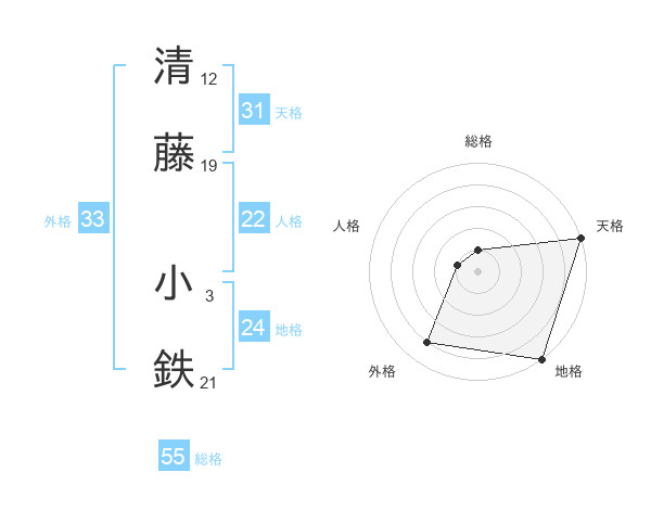 清藤 小鉄さんの天格は31画の5点!
