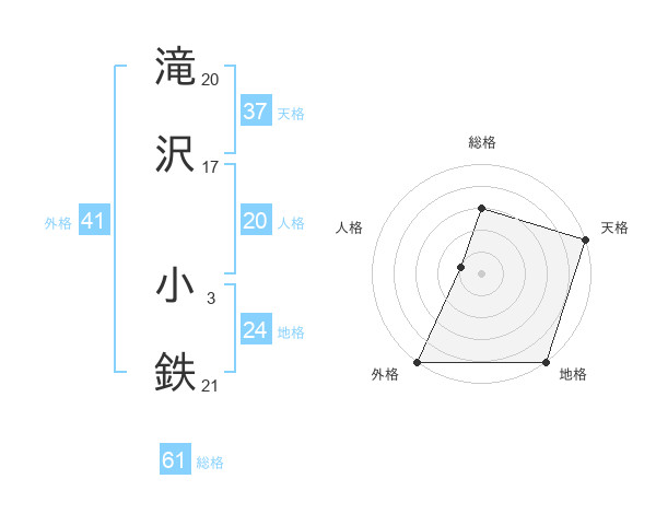 滝沢 小鉄さんを姓名の画数から五運を鑑定