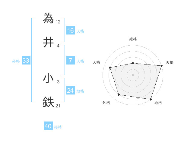 為井 小鉄さんを姓名の画数から五運を鑑定