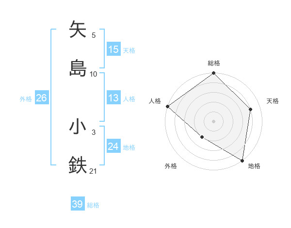 矢島 小鉄さんを姓名の画数から五運を鑑定