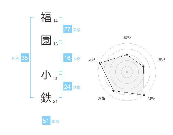 福園 小鉄さんの総格は51画の3点!