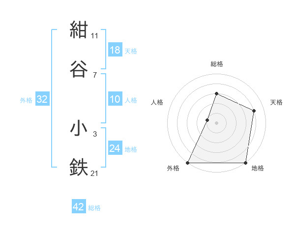 紺谷 小鉄さんを姓名の画数から五運を鑑定