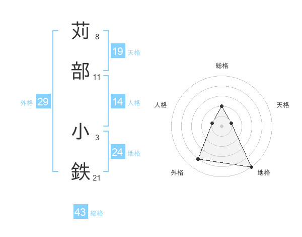 苅部 小鉄さんを姓名の画数から五運を鑑定