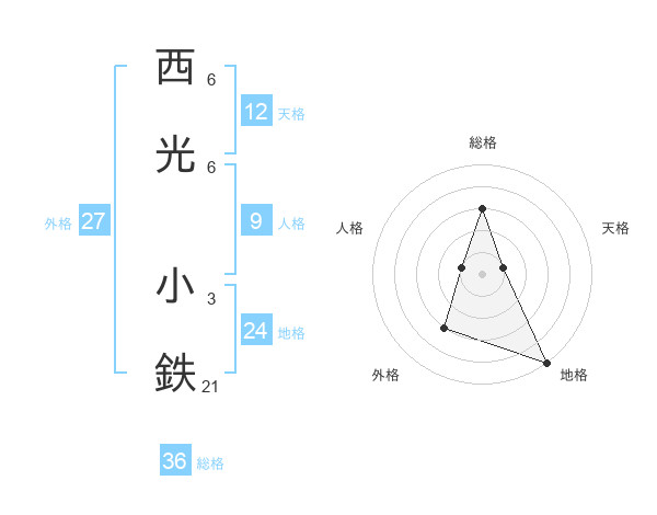 西光 小鉄さんの地格は24画の5点!