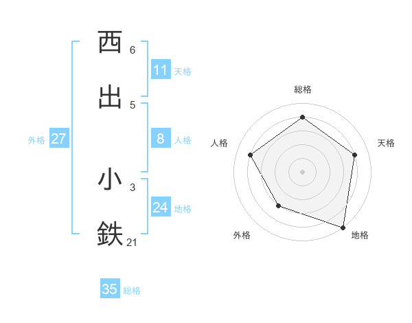 西出 小鉄さんを姓名の画数から五運を鑑定