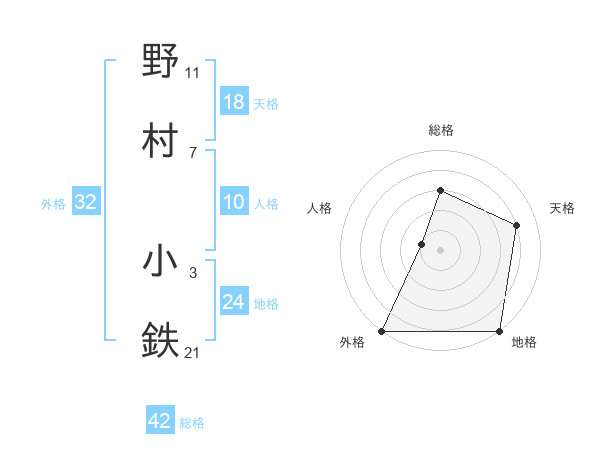 野村 小鉄さんを姓名の画数から五運を鑑定