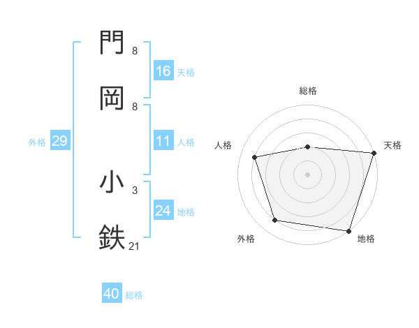 門岡 小鉄さんを姓名の画数から五運を鑑定