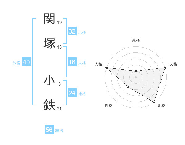 関塚 小鉄さんを姓名の画数から五運を鑑定