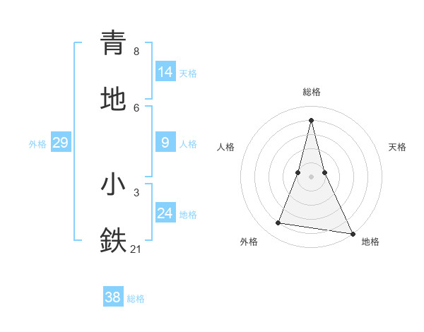 青地 小鉄さんを姓名の画数から五運を鑑定
