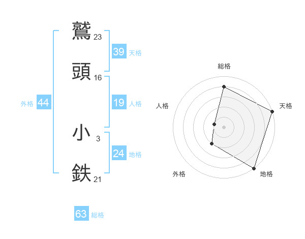 鷲頭 小鉄さんを姓名の画数から五運を鑑定