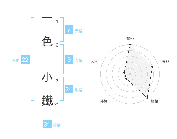 一色 小鐵さんを姓名の画数から五運を鑑定