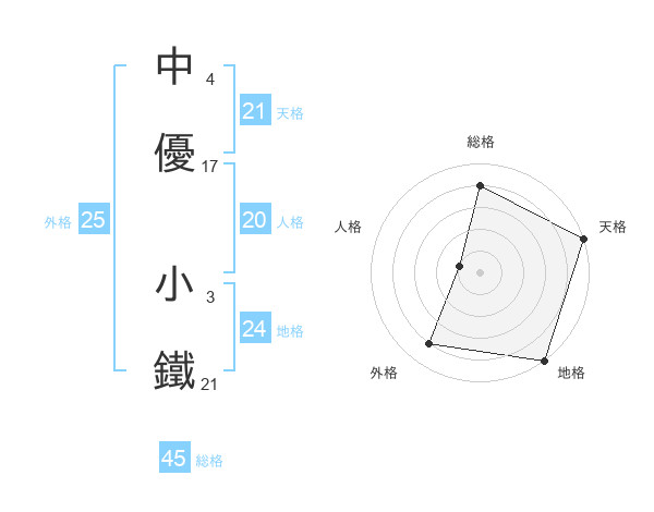 中優 小鐵さんの外格は25画の4点!