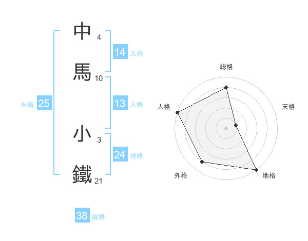 中馬 小鐵さんの総格は38画の4点!