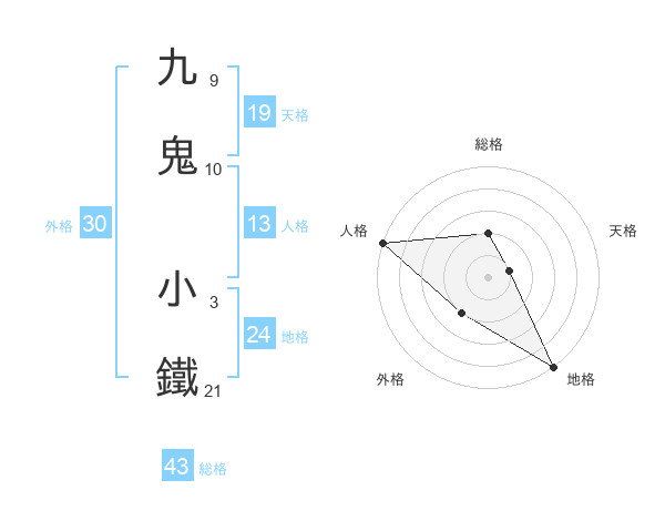 九鬼 小鐵さんの外格は30画の2点!