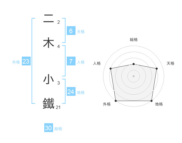二木 小鐵さんを姓名の画数から五運を鑑定