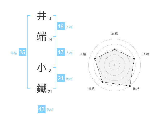 井端 小鐵さんを姓名の画数から五運を鑑定