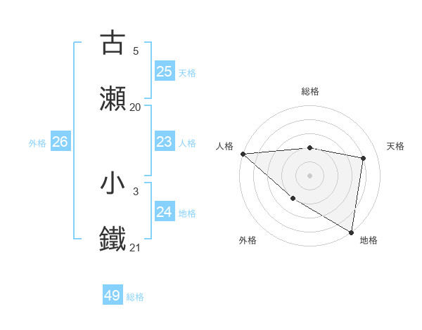 古瀬 小鐵さんの総格は49画の2点!