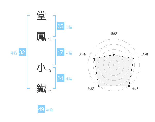 堂鳳 小鐵さんを姓名の画数から五運を鑑定