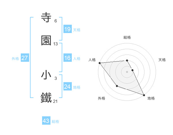 寺園 小鐵さんの外格は27画の3点!