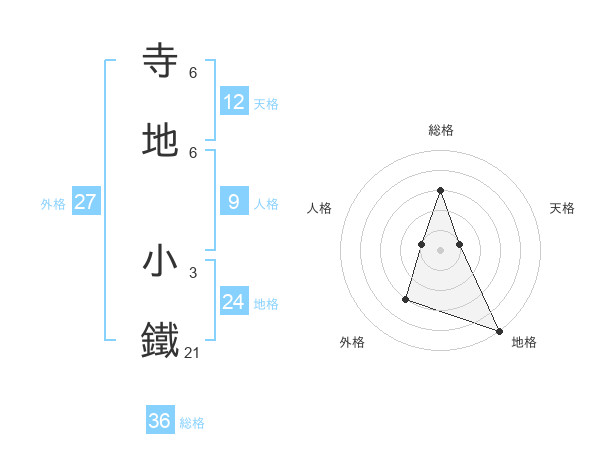 寺地 小鐵さんの総格は36画の3点!