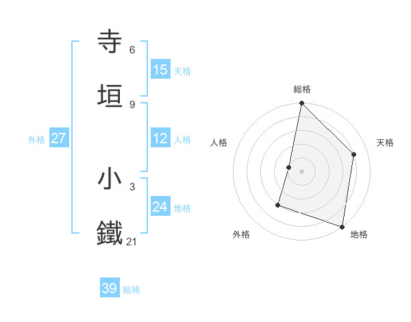 寺垣 小鐵さんの総格は39画の5点!