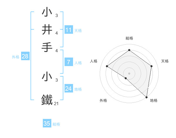 小井手 小鐵さんを姓名の画数から五運を鑑定